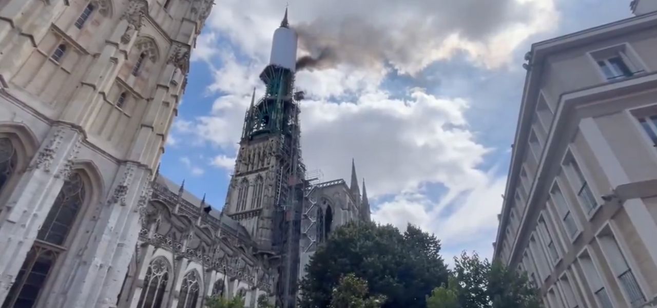 Un #incendie est en cours sur la flèche de la cathédrale de #Rouen. L’origine est inconnue à ce stade. pic.twitter.com/AuF6j1yqVd