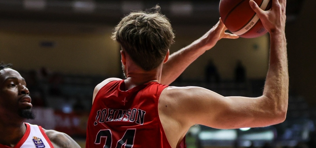 Jayce Johnson contro Derek Cooke in Trieste Pistoia (da facebook.com/pallacanestrotrieste)
