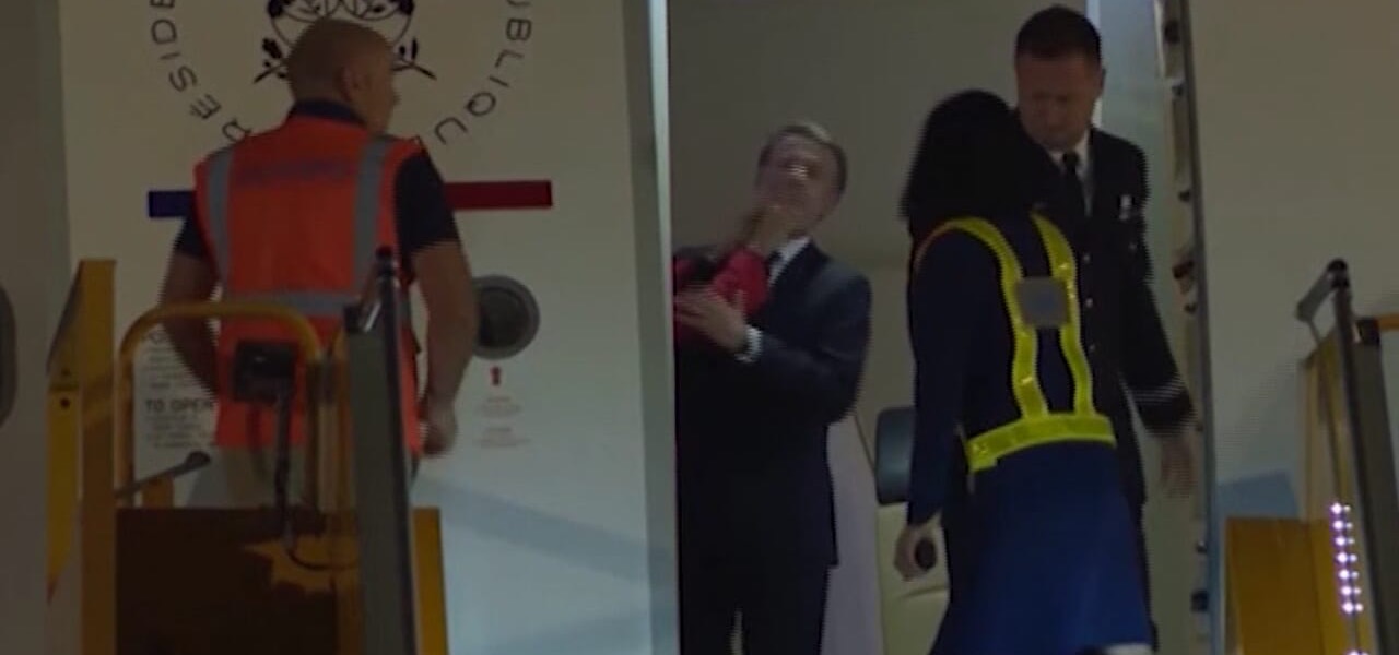 Si vede una mano della moglie che afferra il viso del presidente francese, il quale appare dapprima sorpreso dal gesto, poi imbarazzato, rendendosi conto di essere osservato; quindi, si ricompone rapidamente con un saluto. La coppia scende poi la scaletta: si nota Macron che tende un braccio verso la moglie, come è sua abitudine, ma lei non lo afferra, anzi si avvicina al corrimano della passerella. Il video è diventato un caso anche per la reazione dell’Eliseo, che inizialmente ha negato l’autenticità delle immagini.