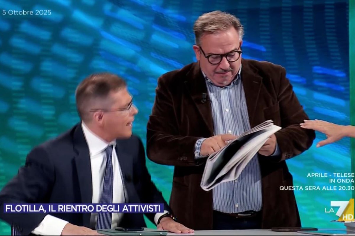 Duro scontro tra Luca Telese e Daniele Capezzone, scoppiato in tv e poi proseguito sui social dai due giornalisti. Al centro la Global Sumud Flotilla per provare a rompere il blocco navale a Gaza imposto da Israele. Tutto è partito dall’attacco di Capezzone all’europarlamentare Benedetta Scuderi, che era collegata in diretta a Omnibus: la tesi del direttore editoriale di Libero è che l’europarlamentare di Avs e altri parlamentari abbiano abbandonato i compagni attivisti tornando prima in Italia, senza opporsi davvero.