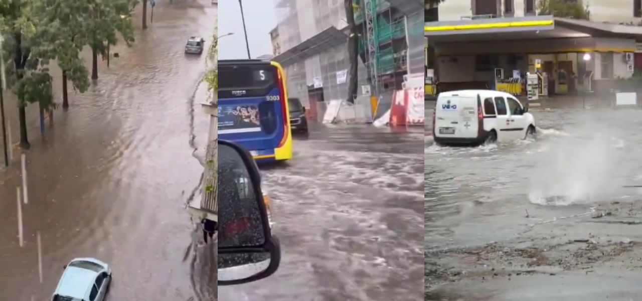Un violento nubifragio si è abbattuto su Torino e sui comuni limitrofi: dai video diffusi online si vedono le strade allagate e i tombini divelti