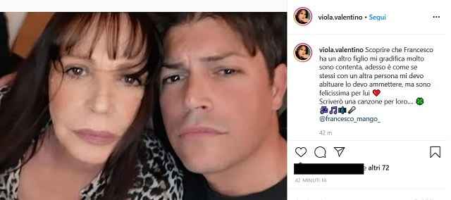 Viola Valentino, su Instagram, annuncia un'importante novità: "il mio compagno Francesco Mango ha scoperto di avere un altro figlio".