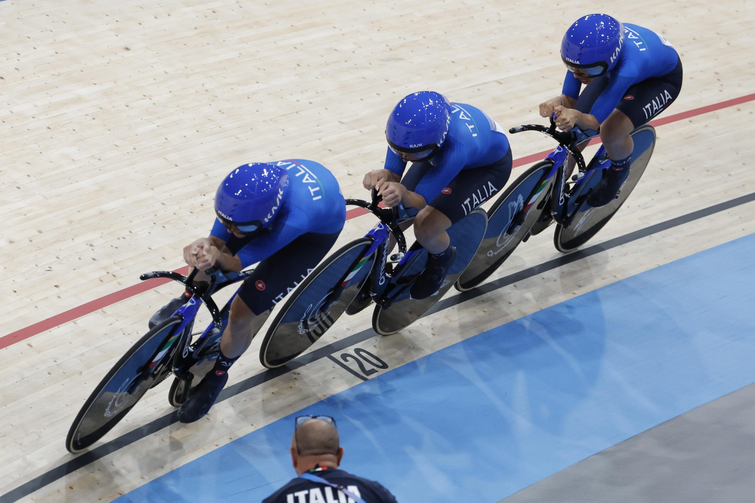 Italia inseguimento a squadre donne: Letizia Paternoster, Chiara Consonni e Vittoria Guazzini (Ansa)