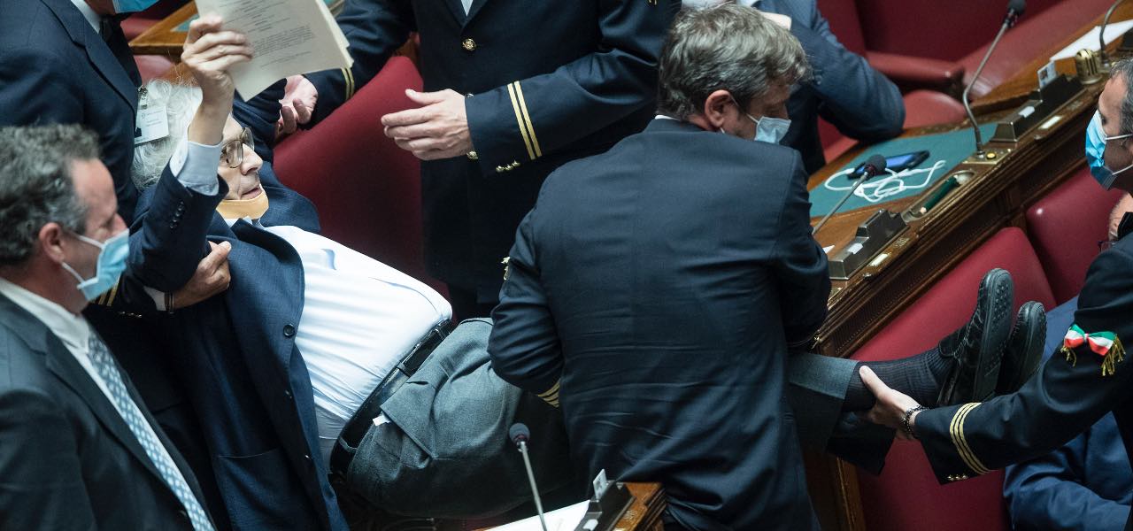 Vittorio Sgarbi espulso dall’Aula della Camera e portato via di peso visto che non voleva saperne di andare via. Alta tensione oggi pomeriggio alla Camera, poco prima del voto finale sul dl Giustizia. A proposito del caso Csm, aveva parlato di «una nuova tangentopoli» e chiesto l’istituzione di una commissione d’inchiesta per indagare su «Palamaropoli», poi ha citato Francesco Cossiga che definì l’Anm una «associazione a delinquere mafiosa». Da qui la reazione di Giusi Bartolozzi, deputata di Forza Italia ma magistrato nella vita. A quel punto Sgarbi ha perso il controllo e inveito con insulti che hanno costretto la vicepresidente Mara Carfagna a imporre la sua espulsione.