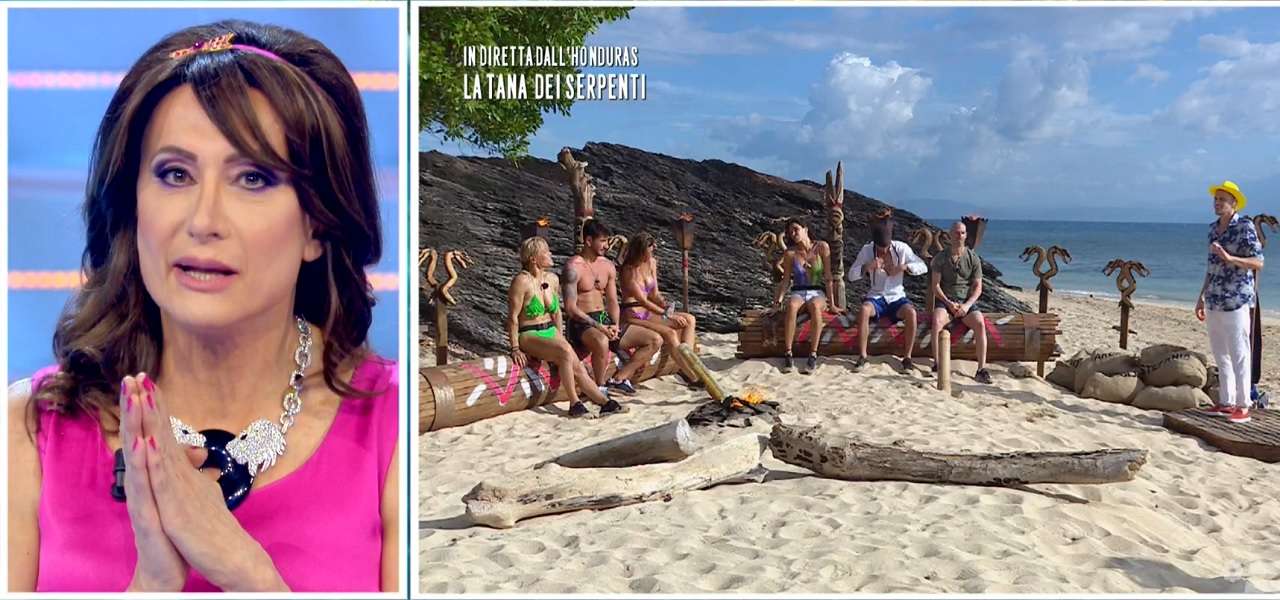 C’è una grande novità quest’anno all’Isola dei Famosi. Alvin raduna i suoi concorrenti ‘single’ in un posto nuovo che non è, dunque, la palapa ma un posto in spiaggia, in riva al mare, chiamato ‘La tana dei serpenti’. Pare, infatti, che sia una parte dell’Isola in cui non è difficile vedere dei serpenti, tanto che Floriana Secondi ne incontra uno proprio al suo fianco. Questa presenza dà a Vladimir Luxuria in studio lo spunto per una battuta tra il trash e il piccante su Cicciolina, che scatena un po’ di imbarazzo in studio.