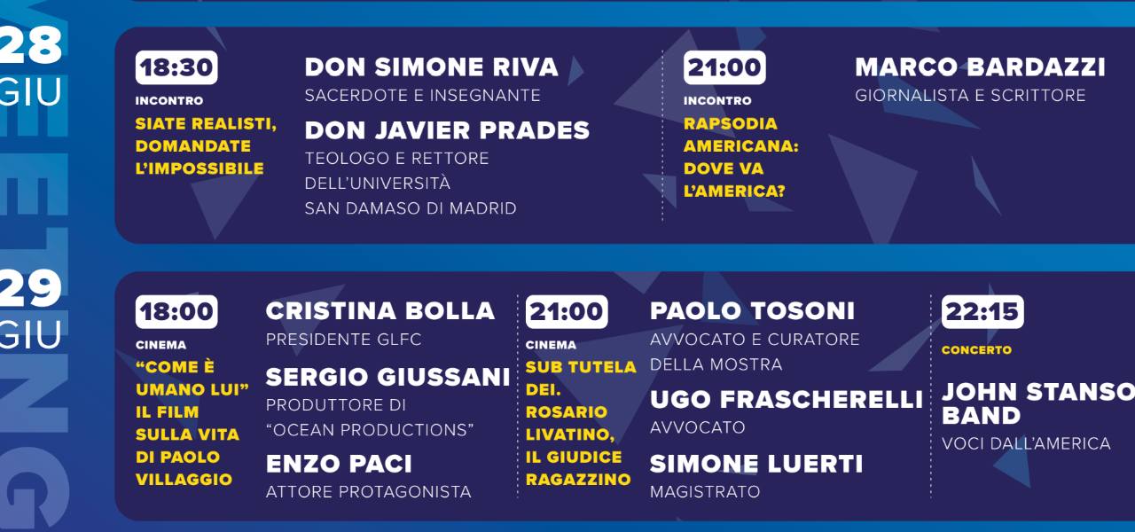 Alle ore 21 è invece previsto nel programma del West Coast Meeting Finale Ligure 2024 l’incontro sulla mostra “Sub tutela Dei. Rosario Livatino, il giudice ragazzino” per provare ad approfondire una delle figure più importanti della società italiana degli ultimi decenni: presenti l’avvocato e curatore della mostra presentata al Meeting di Rimini 2022, Paolo Tosoni; con lui anche l’avvocato Ugo Frescherelli e il magistrato Simone Luerti. A chiudere il programma di sabato ci pensa il concerto dalle ore 22.15 della “John Stanson Band”, con voci dall’America di ieri e di oggi.