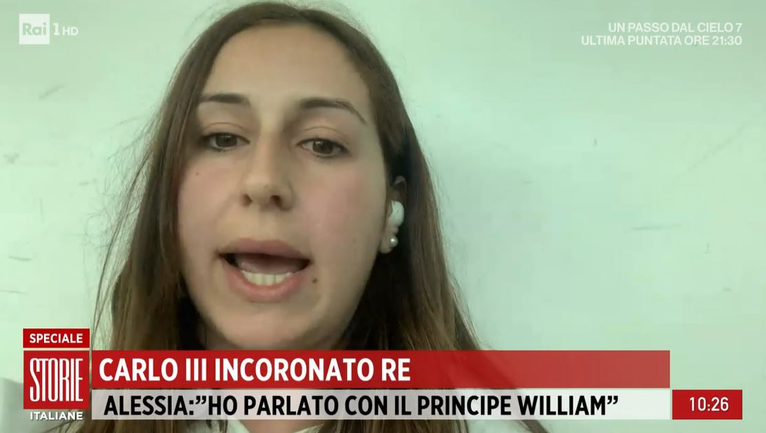 Ampio spazio stamane a Storie Italiane, in diretta su Rai Uno, all’incoronazione di Re Carlo III, evento seguito in diretta tv in mondo visione, tenutosi sabato pomeriggio. Il programma del primo canale ha intervistato in collegamento Alessia, ragazza italiana che in questi giorni è divenuta famosissima dopo la sua chiacchierata con il Principe William, ripresa da uno smartphone e pubblicata poi su Instagram.
