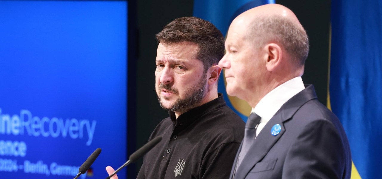 Volodymir Zelensky, presiedente dell'Ucraina, con Olaf Scholz, cancelliere tedesco (Ansa)