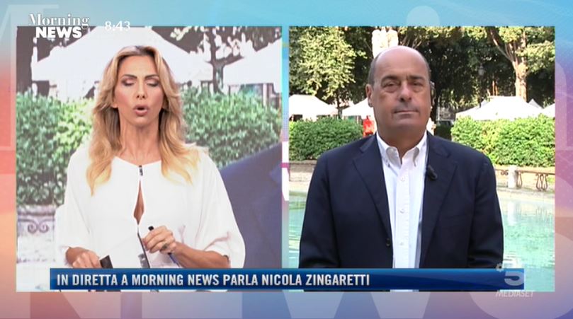 Nicola Zingaretti, governatore della regione Lazio, in collegamento stamane con il programma di Canale 5 Morning News: le sue parole con Simona Branchetti