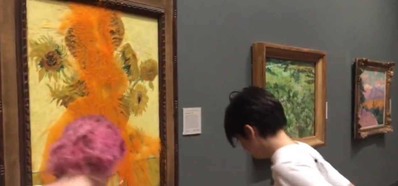 Come si evince dal filmato disponibile online e probabilmente giunto ormai a qualsiasi latitudine, le due attiviste sono entrate nel museo con indosso le t-shirt ufficiali del loro movimento di appartenenza, di colore bianco, e subito dopo hanno lanciato due lattine di zuppa di pomodoro contro “I Girasoli” di Van Gogh, tra le urla di stupore dei presenti e una voce agitata che ha subito allertato la sicurezza presente nella struttura.